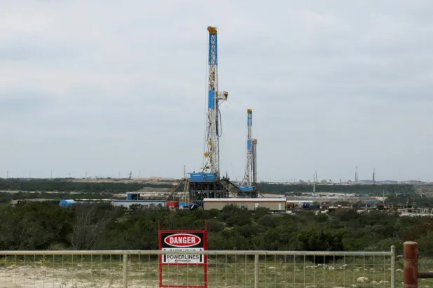 موظفو شركة «شيفرون» يعملون في موقع حفر استكشاف النفط في تكساس (رويترز)