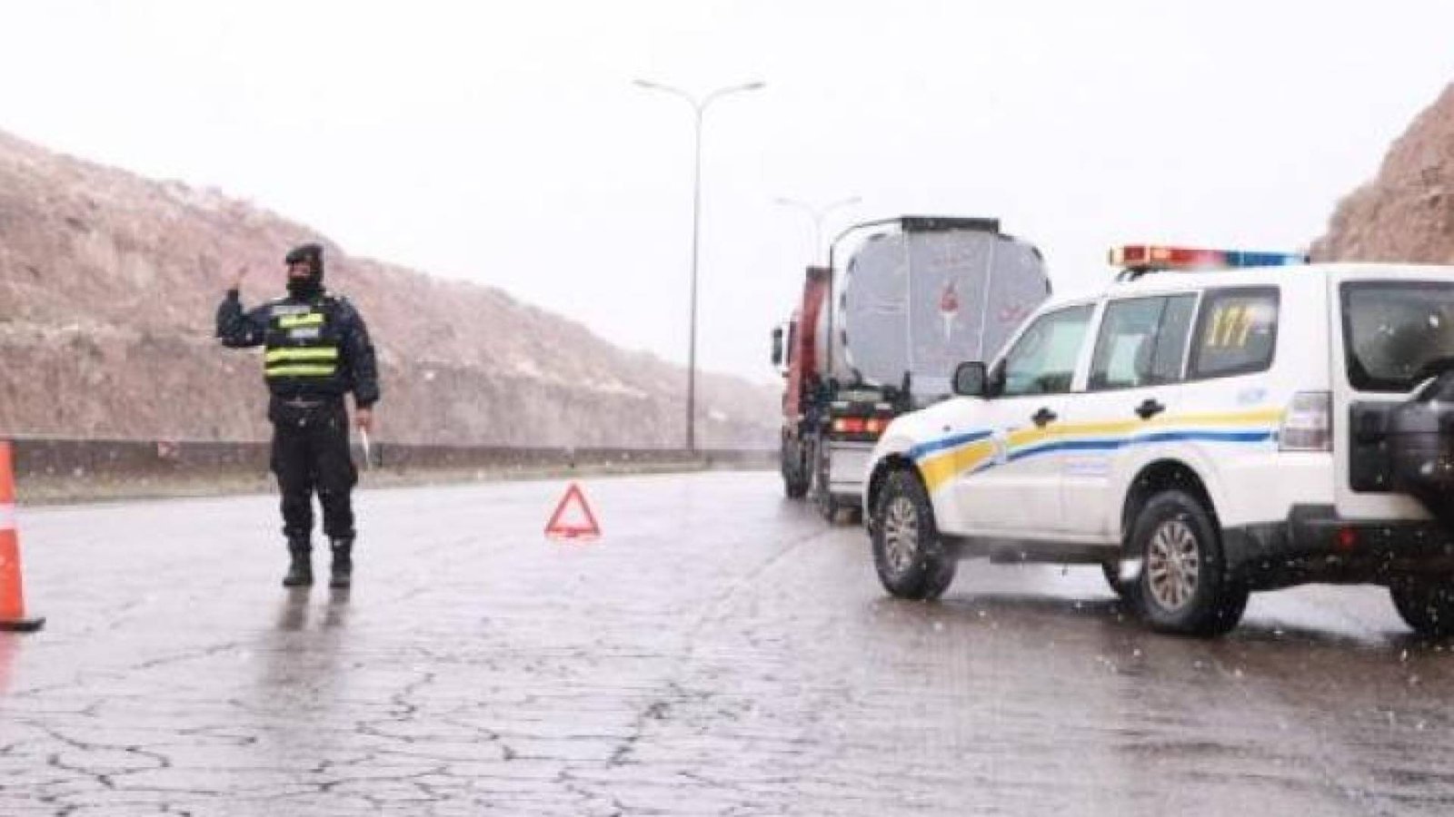وأوضحت الإدارة أن نشامى الدوريات تواجدوا في المكان؛ لضمان سلامة مرتادي الطريق، لحين اتخاذ الإجراءات اللازمة بالتنسيق مع الجهات المعنية لمعالجة الموقف.
