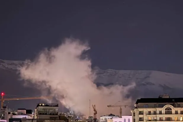 غبار ودخان يتصاعدان بعد غارة جوية على منطقة فرمانية شمال طهران فجر الثلاثاء (شبكات التواصل)