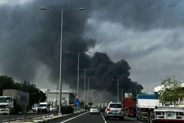 دخان يتصاعد من ميناء جبل علي في دبي بعد هجوم إيراني يوم 1 مارس 2026 (رويترز)