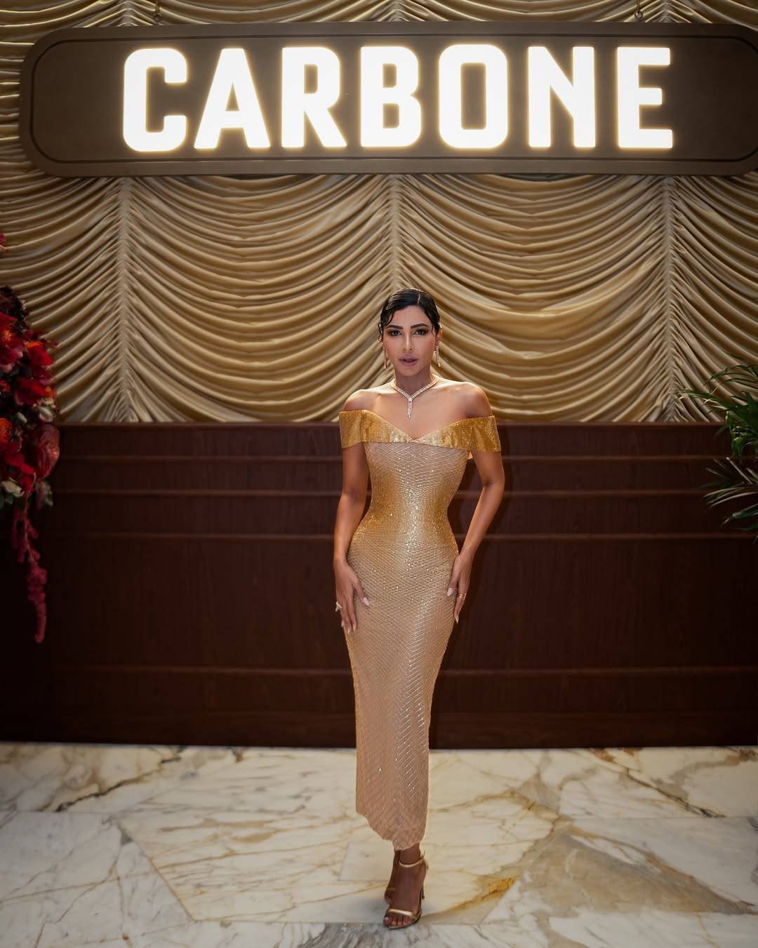 مهيرة عبد العزيز بفستان ذهبي لماع من علي قروي