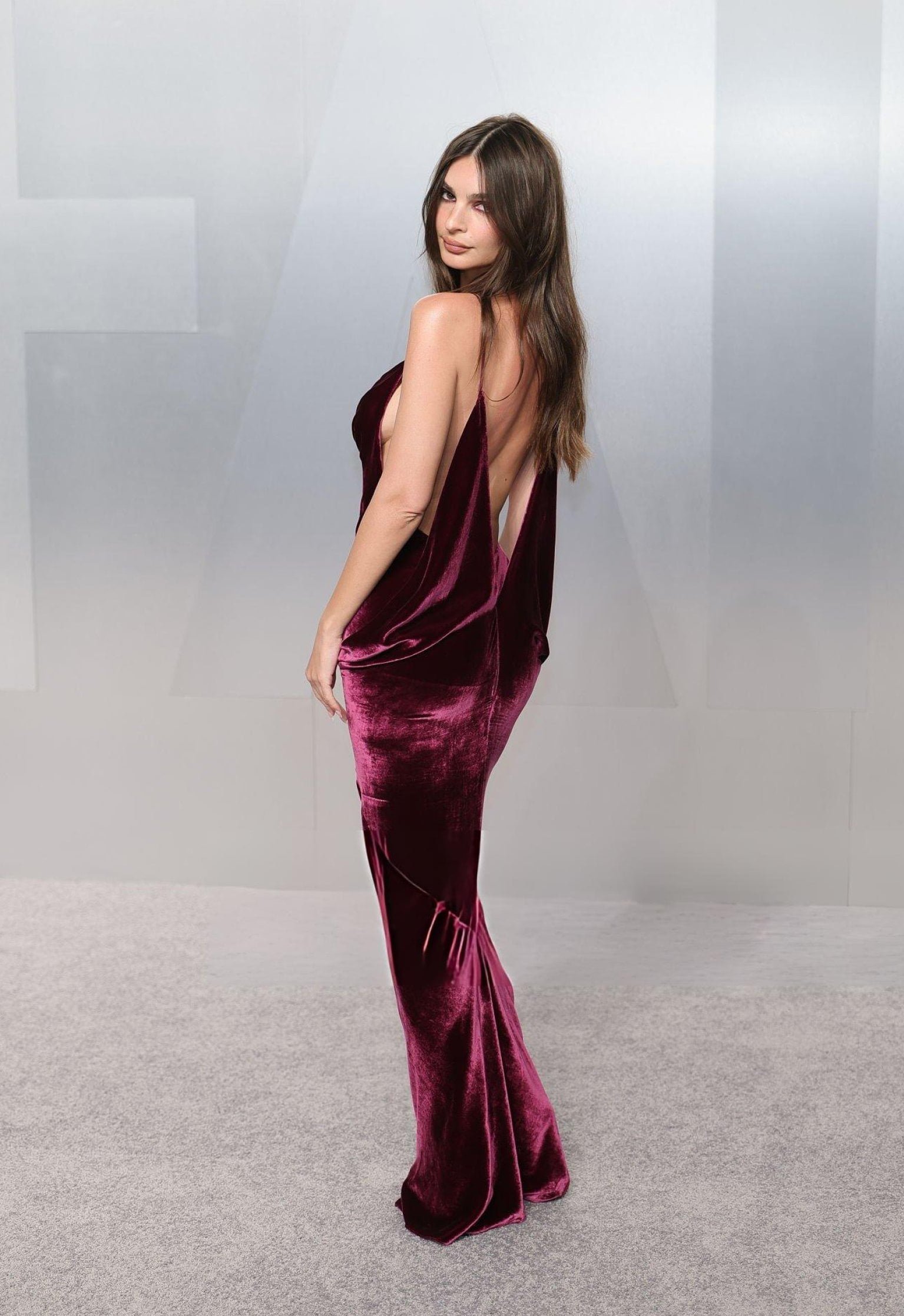 في هذه الليلة، اختارت راتاجكوسكي فستاناً مخملياً بفتحة صدر عميقة وفتحات جانبية جريئة تكشف عن لمحات من بشرتها.