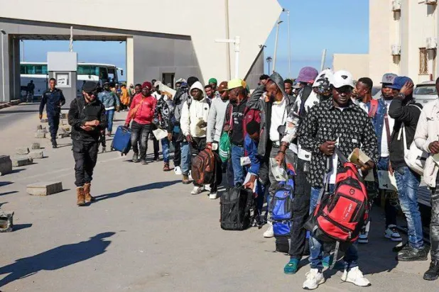 مهاجرون غير نظاميين قبل ترحيلهم من ليبيا إلى مصر (جهاز مكافحة الهجرة غير الشرعية في ليبيا)
