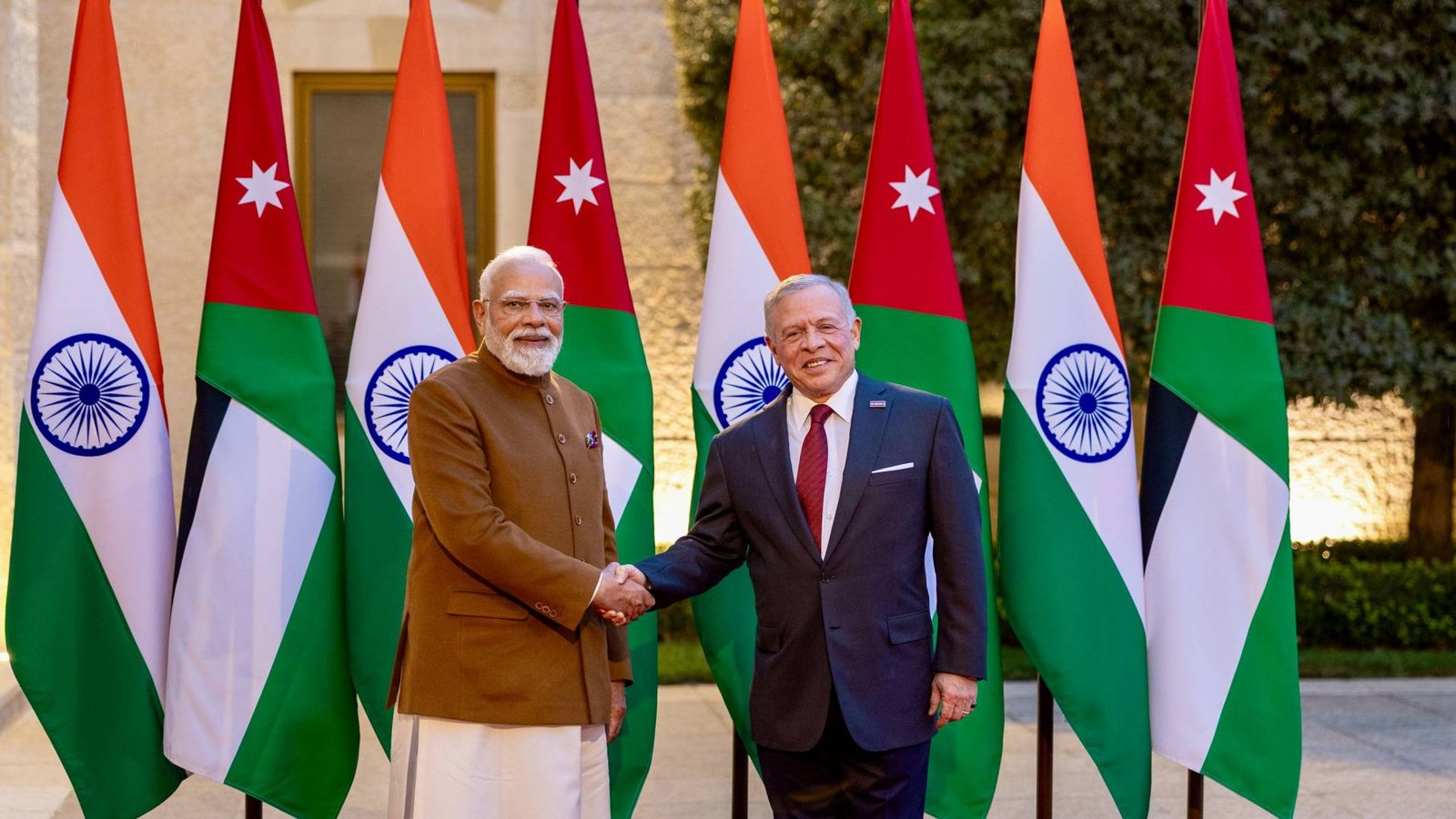 23. في ختام الزيارة، أعرب رئيس الوزراء ناريندرا مودي عن خالص شكره وتقديره لجلالة الملك عبدالله الثاني على حفاوة الاستقبال وكرم الضيافة اللذين حظي بهما هو والوفد المرافق. وأعرب عن تمنياته لشعب المملكة الأردنية الهاشمية الصديق بدوام التقدم والازدهار. ومن جانبه، تمنى جلالة الملك لرئيس الوزراء ناريندرا مودي ولشعب الهند الصديق المزيد من التقدم والازدهار.