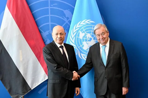 وبحسب الإعلام الرسمي اليمني، شدّد غوتيريش خلال لقائه رئيس مجلس القيادة الرئاسي رشاد العليمي وعضوي المجلس؛ اللواء عيدروس الزبيدي، وعبد الله العليمي، على التزام المنظمة الدولية بالعمل مع القيادة اليمنية لمساعدة الشعب اليمني، مؤكداً أن حماية العاملين الإنسانيين ونقل مكاتب رئيسية إلى عدن يأتيان ضمن إجراءات عاجلة لتقليص المخاطر.