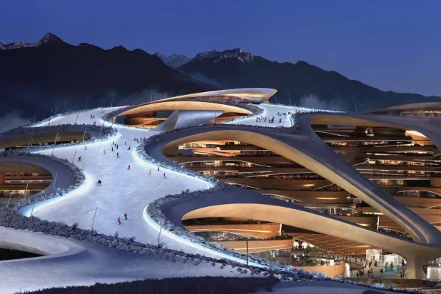 من أعمال البناء في مدينة التزلج الشتوية بنيوم (الشرق الأوسط)
