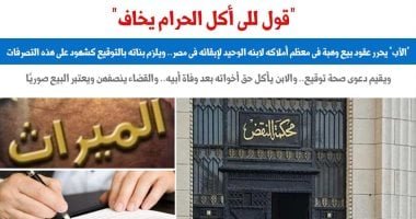“قول للى أكل الحرام يخاف”.. “الأب” يحرر عقود بيع وهبة في معظم أملاكه لإبنه الوحيد لإبقائه في مصر.. ويلزم بناته بالتوقيع كشهود علي هذه التصرفات.. ويقيم دعوى صحة توقيع.. والإبن يأكل حق أخواته بعد وفاة أبيه.. والقضاء ينصفهن ويعتبر البيع صورى
