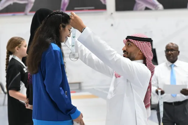 توجت ربى المصري نجمة نادي العلا بالميدالية الذهبية لسلاح السيبر «عمومي» في الجولة الذهبية لبطولة السعودية للمبارزة للسيدات عمومي تحت 14.