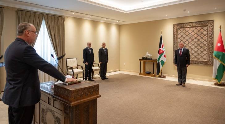 وحضر مراسم أداء اليمين رئيس الديوان الملكي الهاشمي يوسف حسن العيسوي.
