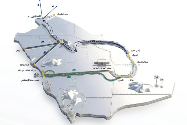 وتأتي هذه الخطوة في ظلِّ المتغيرات المتسارعة التي تشهدها سلاسل الإمداد العالمية. وتتمثَّل المسارات الجديدة في منظومة لوجيستية متكاملة تربط موانئ الخليج العربي بوسط وشمال السعودية، وتمتد وصولاً إلى موانئ البحر الأحمر والدول شمال البلاد، عبر شبكة نقل متعددة الوسائط تجمع بين النقل البري والسككي، بما يُعزِّز انسيابية سلاسل الإمداد، ويرفع كفاءة تدفق البضائع.