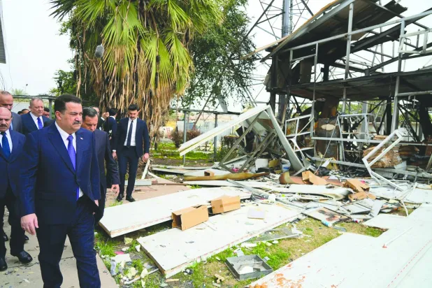 السوداني وخلال زيارته، أمس، مقر الجهاز الذي تم استهدافه السبت، بمسيّرة أدت إلى مقتل ضابط، وإصابة عدد من المنتسبين بجروح، حث القوى السياسية على اتخاذ موقف «واضح وصريح» إزاء الاعتداءات التي تطال المؤسسات الرسمية، في إشارة إلى بعض قوى «الإطار التنسيقي» الشيعي التي لم تعلن مواقف واضحة حيال الهجمات التي تقوم بها الفصائل المسلحة، بدءاً من القصف المستمر للسفارة الأميركية في بغداد، ومروراً بقاعدة الدعم اللوجيستي الدبلوماسي التابعة للسفارة بالقرب من مطار بغداد الدولي، ووصولاً إلى القنصلية الأميركية في أربيل، عاصمة إقليم كردستان.