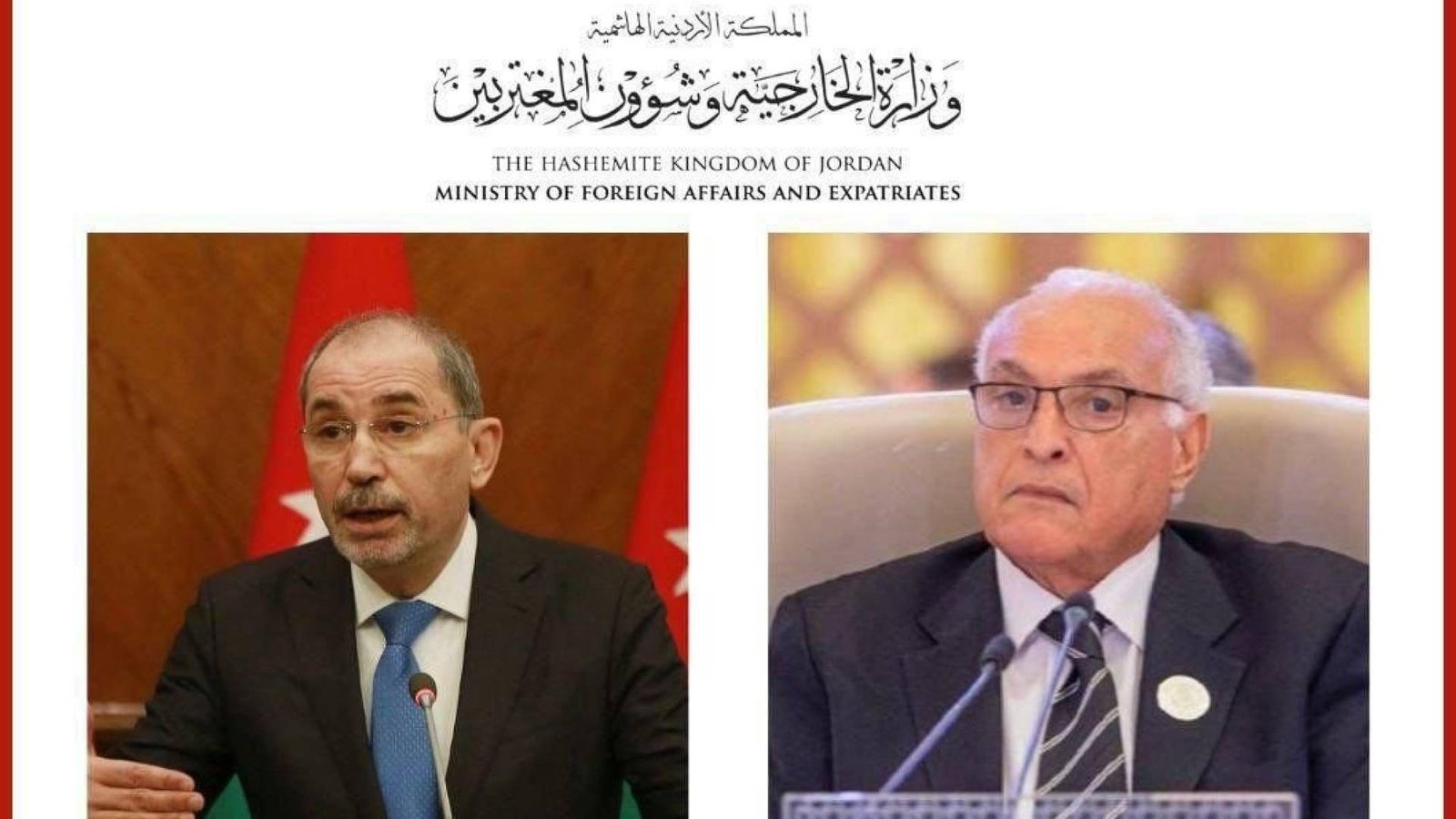 تلقى نائب رئيس الوزراء ووزير الخارجية وشؤون المغتربين، أيمن الصفدي، يوم الثلاثاء، اتصالا هاتفيا من وزير الشؤون الخارجية والجالية الوطنية بالخارج في الجمهورية الجزائرية الديمقراطية الشعبية الشقيقة أحمد عطاف.