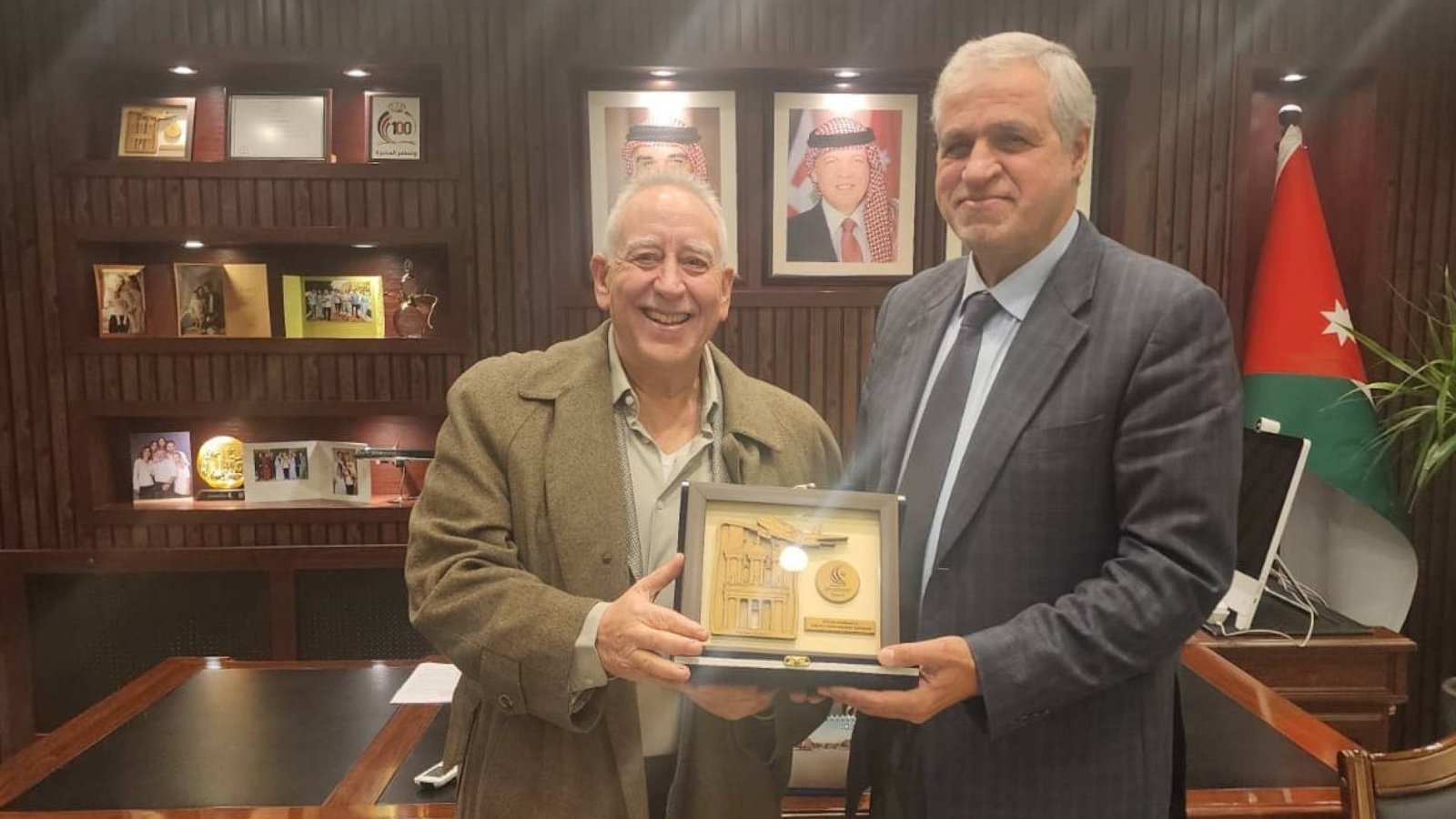 وفي نهاية الزيارة، قام عطوفة رئيس مجلس مفوضي هيئة تنظيم الطيران المدني، الكابتن الفريجات، بتسليم درع الهيئة لعطوفة الرئيس التنفيذي لشركة الملكية الأردنية، المهندس سامر المجالي.