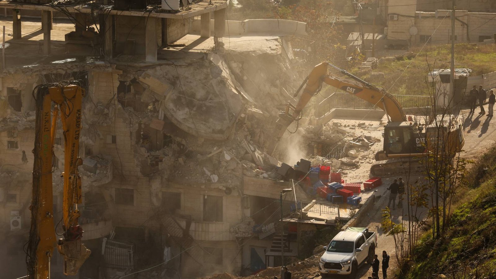 ولم تسلم حجارة المدينة من هذه الحرب، إذ رصدت المحافظة 1732 عملية هدم وتجريف للمنازل والمشآت، مقابل توزيع 1439 إخطارا لوقف البناء. وفي المقابل، تسارعت عجلة الاستيطان بشكل جنوني؛ حيث كشف التقرير بالتعاون مع “جمعية الدراسات/بيت الشرق” عن إيداع مخططات لبناء أكثر من 35 ألف وحدة استيطانية، والمصادقة النهائية على نحو 28,700 وحدة أخرى، فيما دخلت أكثر من 8300 وحدة مرحلة المناقصات تمهيدا للتنفيذ الفعلي.