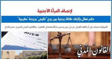 لإنصاف المرأة الأجنبية.. حكم نهائى بإثبات علاقة زوجية بين زوج “خليجى” وزوجة “مغربية”.. والحيثيات تستند على أن العقد العرفى حرر فى مصر ومدون به إقامتهما فى القاهرة.. والقانون المدنى المصرى حسم النزاع