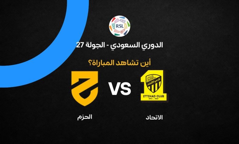 القنوات الناقلة لمباراة الاتحاد والحزم، في إطار منافسات الجولة السابعة والعشرين من الدوري السعودي للمحترفين 2025/2026.