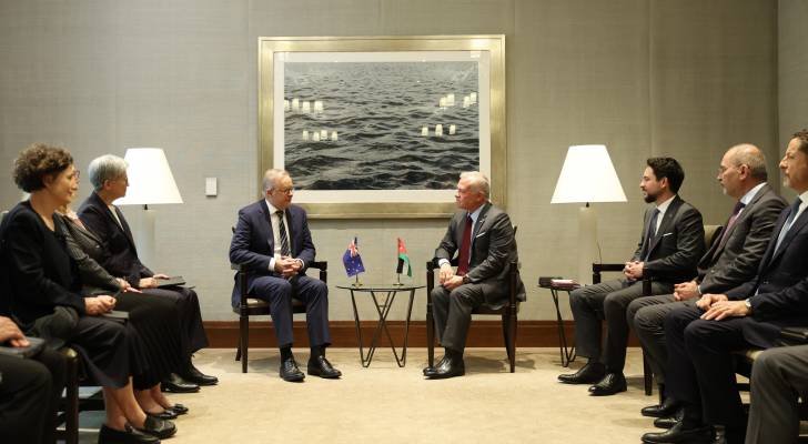 ثمن جلالة الملك عبدالله الثاني، اليوم الأحد، الموقف الأسترالي التاريخي والمتمثل في الاعتراف الرسمي بدولة فلسطين، وذلك خلال لقاء جمعه مع رئيس الوزراء الأسترالي، أنتوني ألبانيزي، على هامش اجتماعات الجمعية العامة للأمم المتحدة في نيويورك.