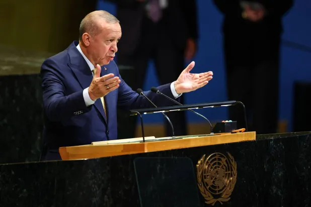 انقطع صوت الرئيس التركي رجب طيب إردوغان خلال كلمته أمام الجمعية العامة للأمم المتحدة في نيويورك (أ.ب)