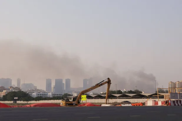 تصاعد الدخان عقب هجوم إيراني في الشارقة بدولة الإمارات العربية المتحدة (رويترز)