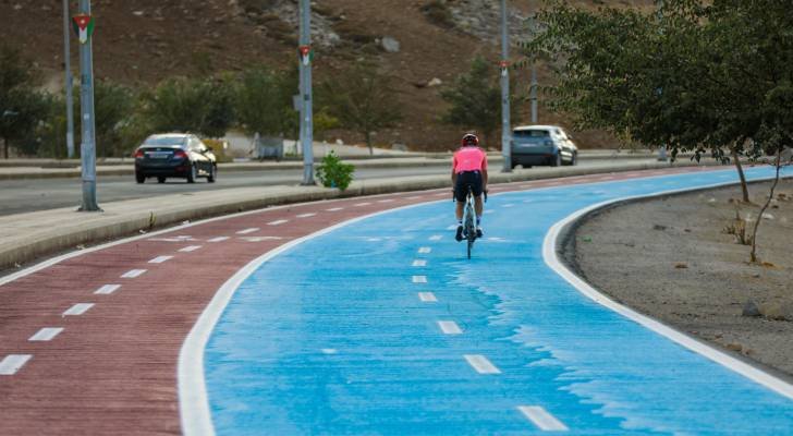 أمانة عمان: مسار المشاة باللون الماروني ومسار الدراجات باللون الأزرق