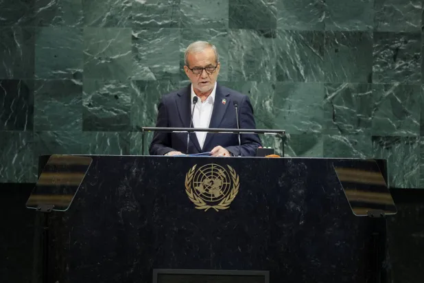 وقال بزشكيان في خطابه أمام الجمعة العامة للأمم المتحدة إن «ثلاث دول أوروبية حاولت الأسبوع الماضي، أن تعيد، بأوامر من الولايات المتحدة، فرض قرارات مجلس الأمن الملغاة، بعدما فشلت طوال عشر سنوات من نكث العهود».