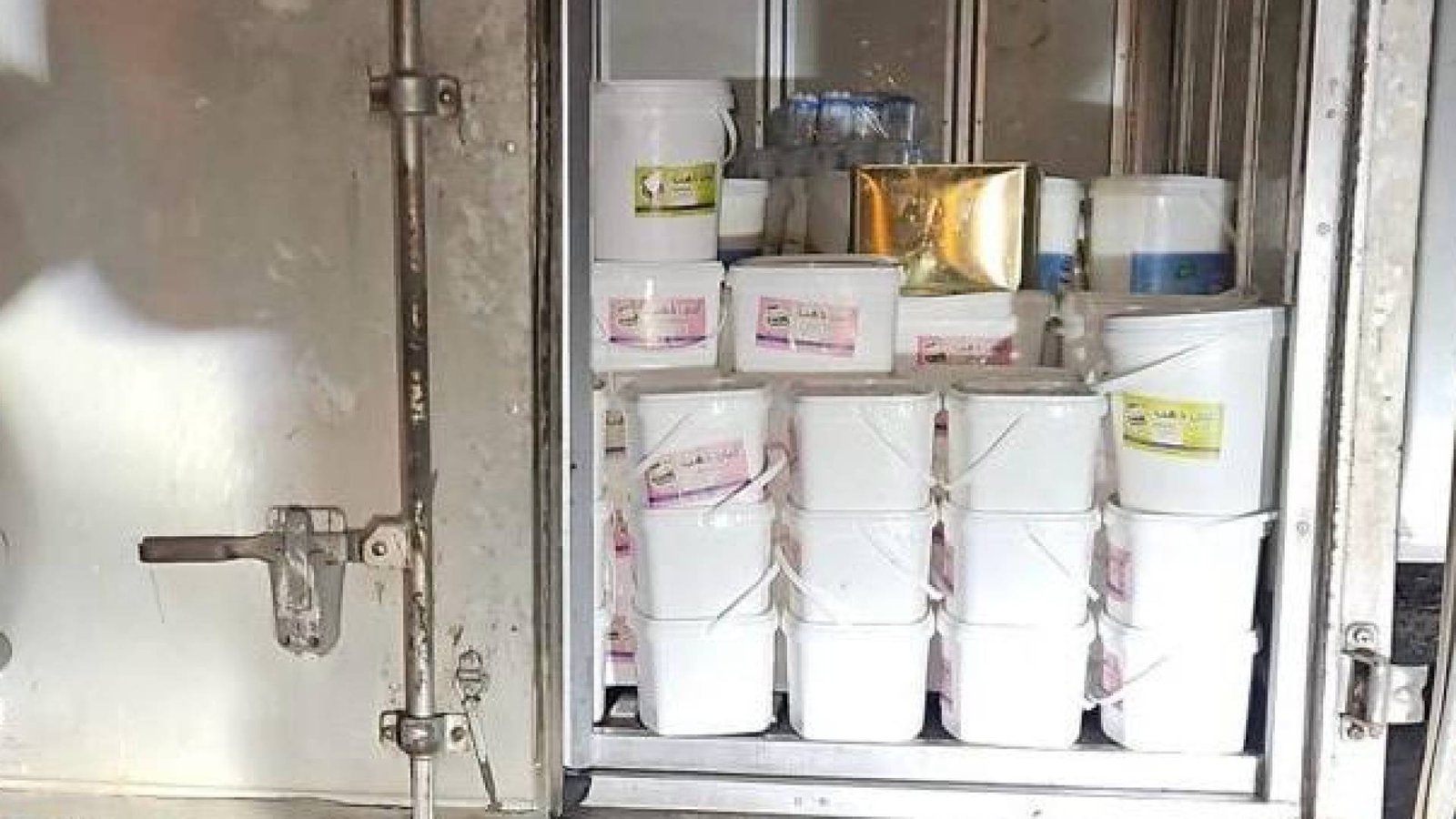 وكانت الكمية محملة داخل مركبة نقل في العاصمة عمان، وتحمل ملصقات لعلامة تجارية وهمية تحت مسمى “ألبان ذهب”.
