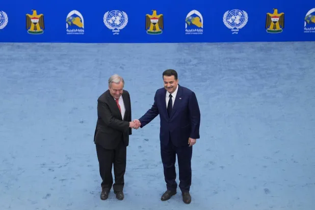 وقال غوتيريش، خلال مؤتمر صحافي مشترك مع السوداني: «شهدنا شجاعة العراق وثباته وإصراره في التغلب على الإرهاب، مؤكداً أن هدف البعثة الأممية كان يندرج ضمن «دعم العراق وحكومته في مواجهة التحديات».