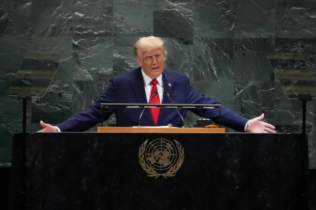 الرئيس الأميركي دونالد ترمب خلال كلمة أمام الجمعية العامة للأمم المتحدة في مقر الأمم المتحدة بنيويورك، 23 سبتمبر 2025 (أ.ف.ب)