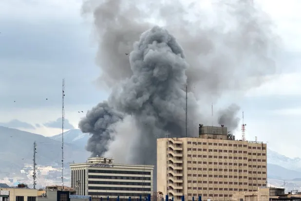 عمود من الدخان يتصاعد بعد هجوم في طهران (أ.ب)