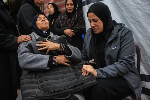وأحاطت نساء أخريات بنور الهدى بوجوه حزينة وسط بحر من الخيام في مخيم بمنطقة المواصي، حيث يعيش مئات الأشخاص الذين نزحوا بسبب القتال والقصف في ظروف محفوفة بالمخاطر.