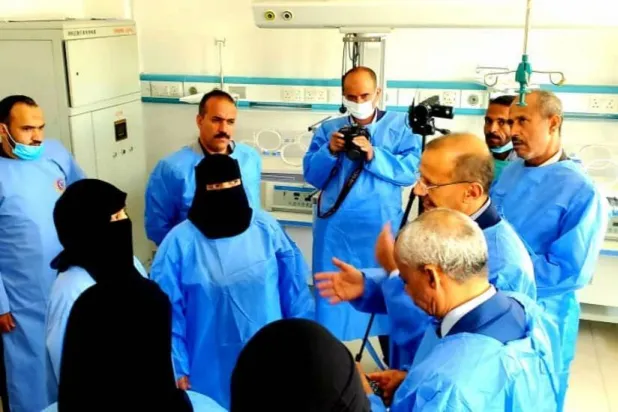 أطباء وعاملون صحيون في مستشفى حكومي خاضع للحوثيين بصنعاء (فيسبوك)