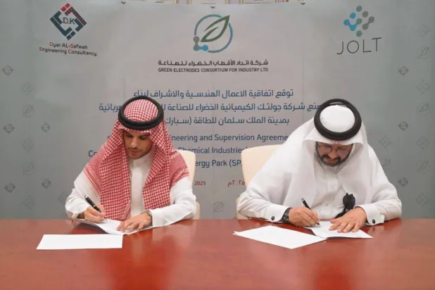 وقّعت شركة «جولت للصناعات الكيميائية الخضراء»، وهي مشروعٌ مشتركٌ بين شركة «اتحاد الأقطاب الخضراء للصناعة» السعودية، وشركة «جولت سولوشنز» الإسبانية، اتفاقية مع مكتب «ديار الصفوة للاستشارات الهندسية» لتنفيذ الأعمال الهندسية والإشراف على إنشاء مصنعها، في مدينة الملك سلمان للطاقة «سبارك» في المنطقة الشرقية بدعمٍ ومساندةٍ من وزارة الطاقة.