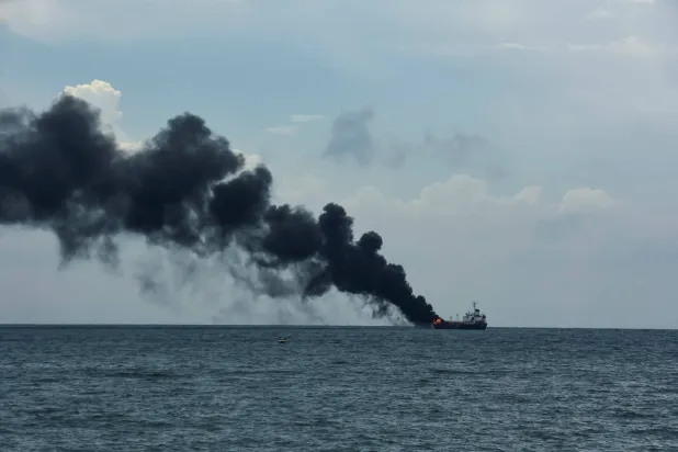 وكان الحريق قد اندلع في الناقلة أثناء وجود عمال الصيانة على متنها، حيث كانت تخضع للصيانة في حوض السفن بميناء تانجونغونتسانغ، حسبما قال رئيس شرطة الجزر، أسيب سافرودين.