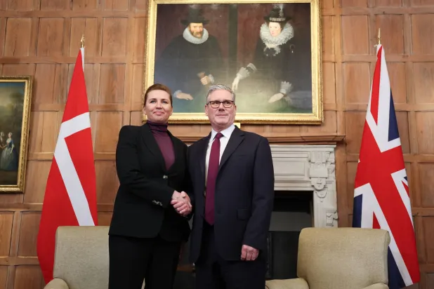 رئيس الوزراء البريطاني كير ستارمر ورئيسة الوزراء الدنماركية مته فريدريكسن يعقدان اجتماعاً ثنائياً في تشيكرز المقر الريفي الرسمي لرئيس وزراء المملكة المتحدة في باكينغهامشير 22 يناير 2026 (إ.ب.أ)
