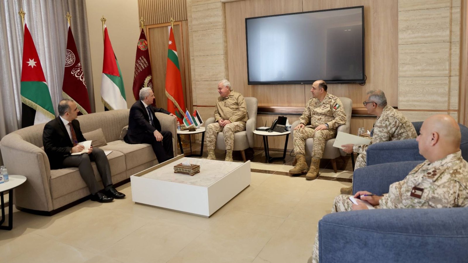 وجرى خلال اللقاء بحث آخر التطورات على الساحتين الإقليمية والدولية، إلى جانب استعراض أوجه التعاون والتنسيق العسكري المشترك، وسبل تعزيز علاقات التعاون الدفاعي بين القوات المسلحة الأردنية ونظيرتها الأذريبجانية، بما يخدم المصالح المشتركة للبلدين الصديقين.