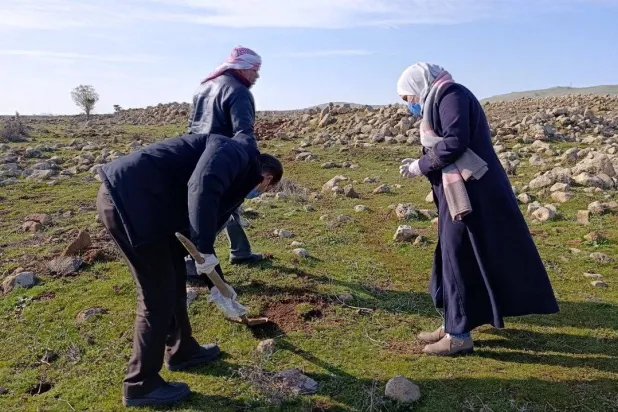 أخذ عينات يناير الماضي من أراضي في قرى الشريط الفاصل لاختبار الأضرار الناجمة عن عمليات الرش الإسرائيلية (مديرية زراعة القنيطرة)