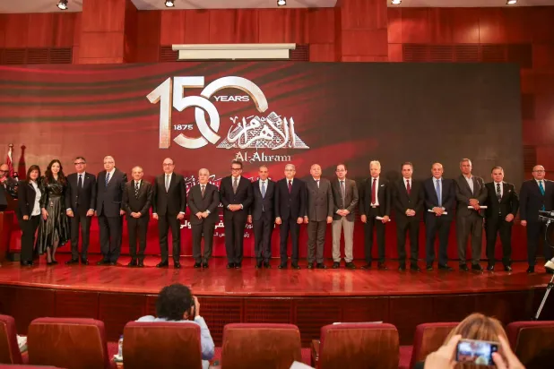 رئيس الهيئة الوطنية للصحافة في مصر عبد الصادق الشوربجي خلال احتفالية «150 سنة أهرام» (صحيفة الأهرام)