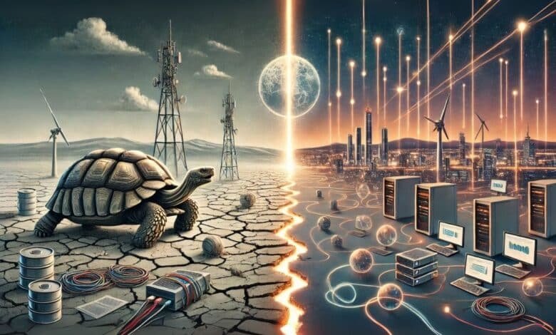 يعتمد غالبية السوريين حتى الآن على شبكة (ADSL) القديمة، التي تستخدم كوابل نحاسية قديمة يزيد عمرها على 20 عامًا، ويؤثر هذا الاعتماد على بنية تحتية متهالكة بنحو مباشر في سرعة الاتصال وجودته، إلى درجة دفعت الكثيرين إلى وصف تلك الخدمة بـ”إنترنت السلحفاة”، نظرًا إلى البطء الشديد في سرعتها.