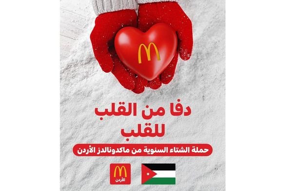 أطلقت شركة عرموش للاستثمارات السياحية، ماكدونالدز الأردن، بالتعاون مع جمعية كلّنا الخير الأردنية، حملتها الشتوية السنويّة الإنسانية “دفا ودعم… من القلب للقلب”، والتي نُفِّذت في عمّان ومختلف محافظات المملكة، دعماً للأسر المحتاجة خلال فصل الشتاء.