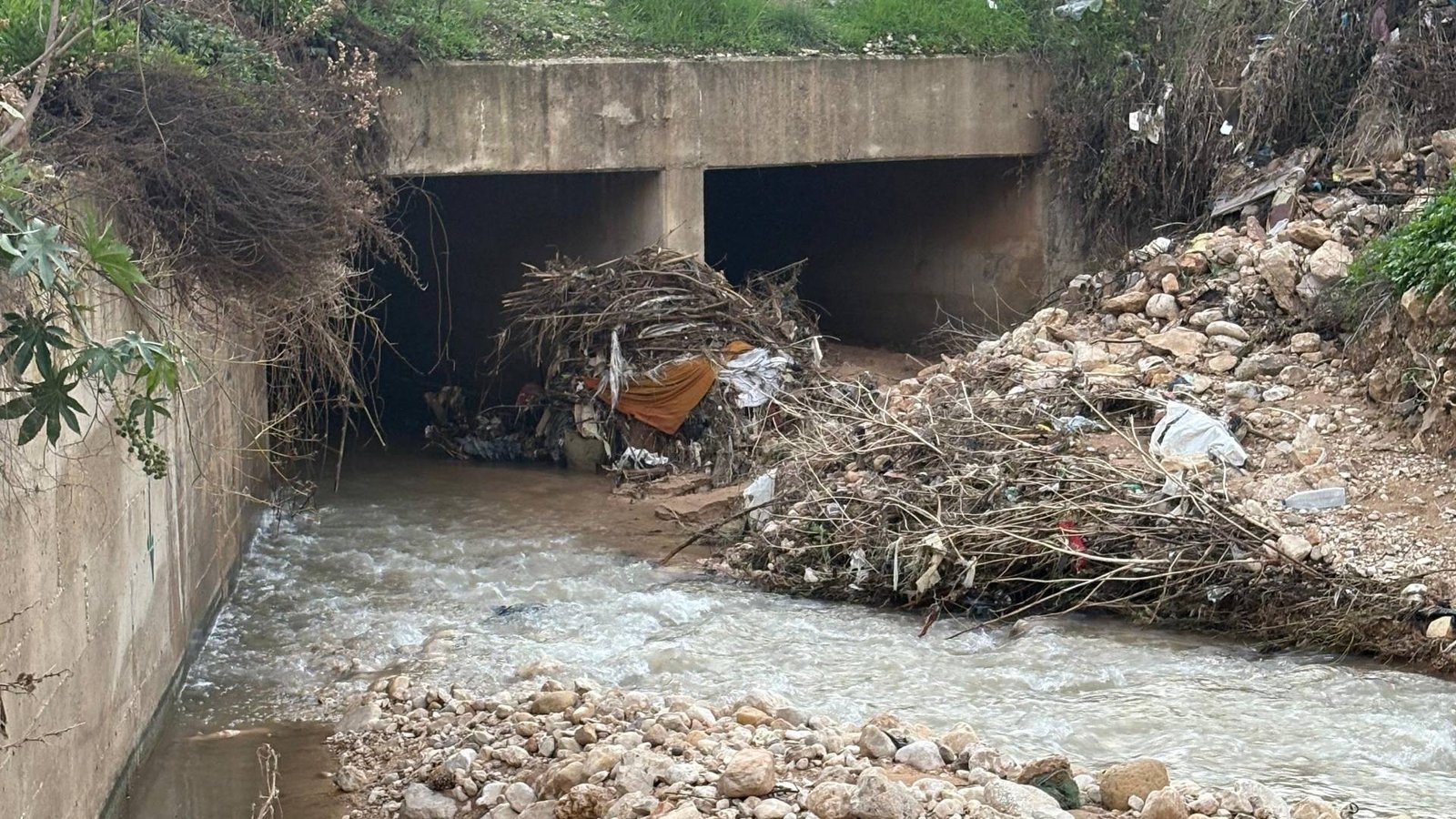 وتسبب تشابك الأغصان والأخشاب مع النفايات القماشية في تشكيل سدود عشوائية تهدد بانحراف جريان السيل نحو التجمعات السكنية المجاورة، خصوصا في حال تجدد الهطولات الغزيرة.