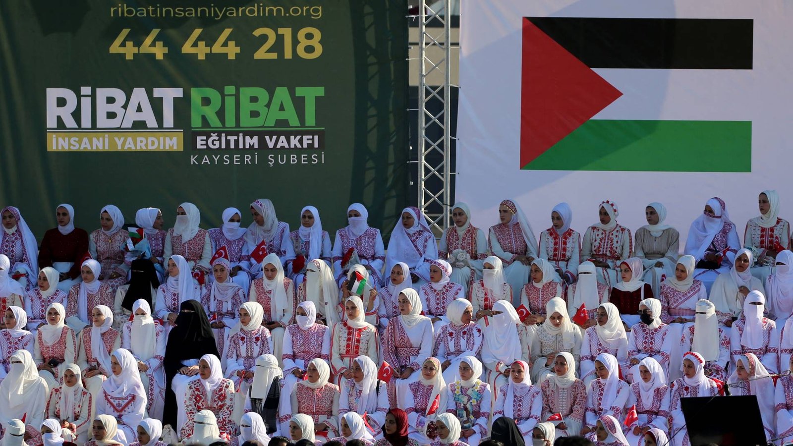 في الممر المؤدي إلى ساحة الاحتفال، اصطف أطفال يصفقون وينثرون الورود، كأنهم يعيدون تعريف الطريق إلى المستقبل، سار العرسان بثبات هادئ، ببدلات سوداء وأثواب مطرزة بالصبر الفلسطيني، بينما كانت الأعلام الفلسطينية والتركية ترفرف فوق المشهد، شاهدة على تضامن إنساني في زمن القسوة.