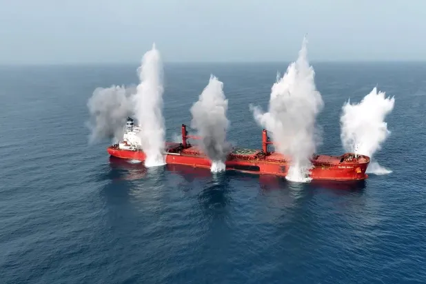 السفينة اليونانية الغارقة «ماجيك سيز» تعرَّضت لأنساق متعددة من الهجمات الحوثية (إ.ب.أ)