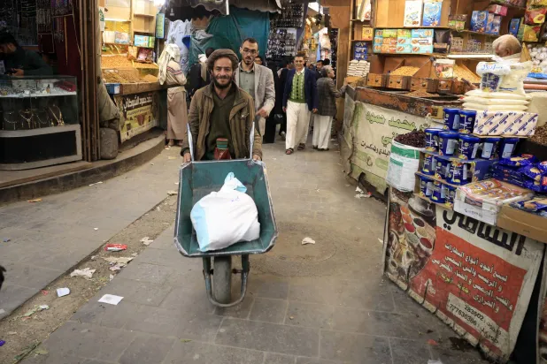 باعة ومارة في إحدى أسواق صنعاء (الشرق الأوسط)