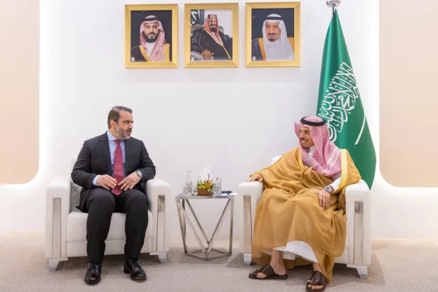 فيصل بن فرحان والشيباني يبحثان جهود دعم أمن سوريا واقتصادها