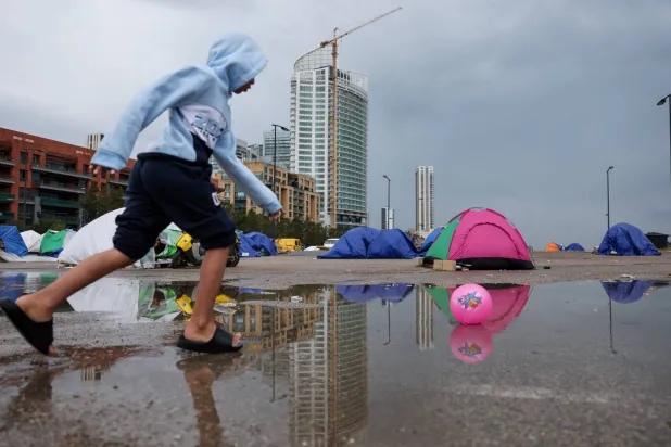 معاناة النازحين إلى بيروت وسط العواصف والطقس الماطر (رويترز)