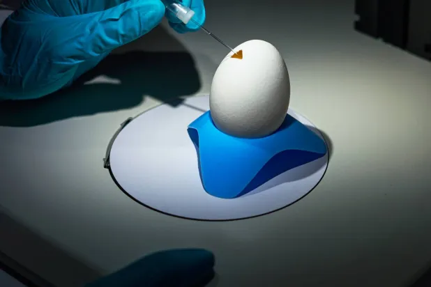 توجد أمام الباحثة إستر أولواغبينغا، بيضةٌ على حامل ثلاثي أزرق، وقد قُطعت نافذة مثلثة صغيرة في قشرتها. وعندما وضعت أولواغبينغا الفتحة تحت المجهر، كشفت عن جنين الدجاجة في الداخل.