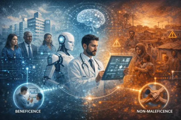 هنا يتغير السؤال جذرياً. لم يعد السؤال؛ هل يستخدم الطب الذكاء الاصطناعي؟ بل أصبح؛ كيف يمكن لهذه الأنظمة أن تعمل داخل المنظومة الأخلاقية التي صاغت الممارسة الطبية عبر قرون طويلة؟ كيف يمكن لخوارزمية أن تفهم، أو على الأقل أن تُحاط بمبادئ الإحسان، وعدم الإضرار، واحترام الاستقلالية، وتحقيق العدالة؟