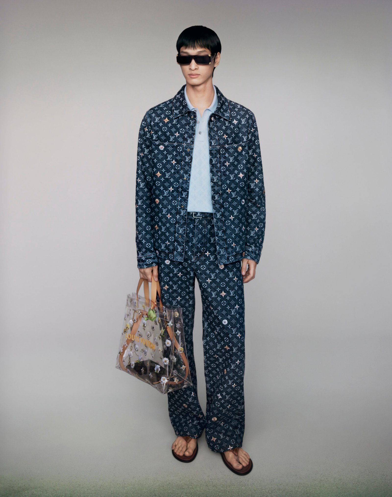يتبوأ الدنيم أدوارًا متنوعة، بدءًا من مجموعات بلوزون وشورتات خفيفة وكاجوال متناسقة، مرورًا بالسترات والبناطيل من جاكار المونوغرام المصبوغ بالألوان المتعددة، ووصولًا إلى القطع المنفصلة ذات التأثيرات الجرافيكية التي تحكي قصة التزام الدار بإدخال خبرتها الحرفية في الملابس العملية. يُطبع قماش التويل القطني، بينما تدمج قمصان البولو المصنوعة من الكتّان أو البيكيه لمسات من Damier أو المونوغرام عبر النسيج فقط.