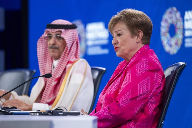 جاء ذلك خلال مؤتمر صحافي مشترك مع وزير المالية السعودي محمد الجدعان رئيس اللجنة الدولية للشؤون النقدية والمالية، التي تضم الدول الأعضاء الـ191 في الصندوق.