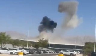 ووثّقت مشاهد انتشرت في وسائل التواصل الاجتماعي انفجار الطائرة في المطار، وتصاعد الدخان في المكان.